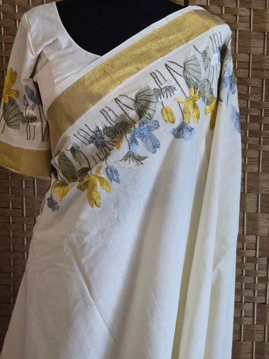 Blue Mul cotton saree - No BP ( saree fall and pico done)