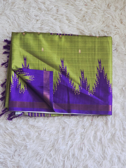 Mul cotton saree with green lavender kanchee border