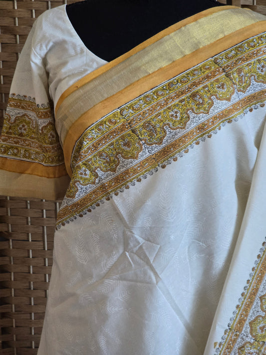 Cotton set saree with printed (stitched blouse)