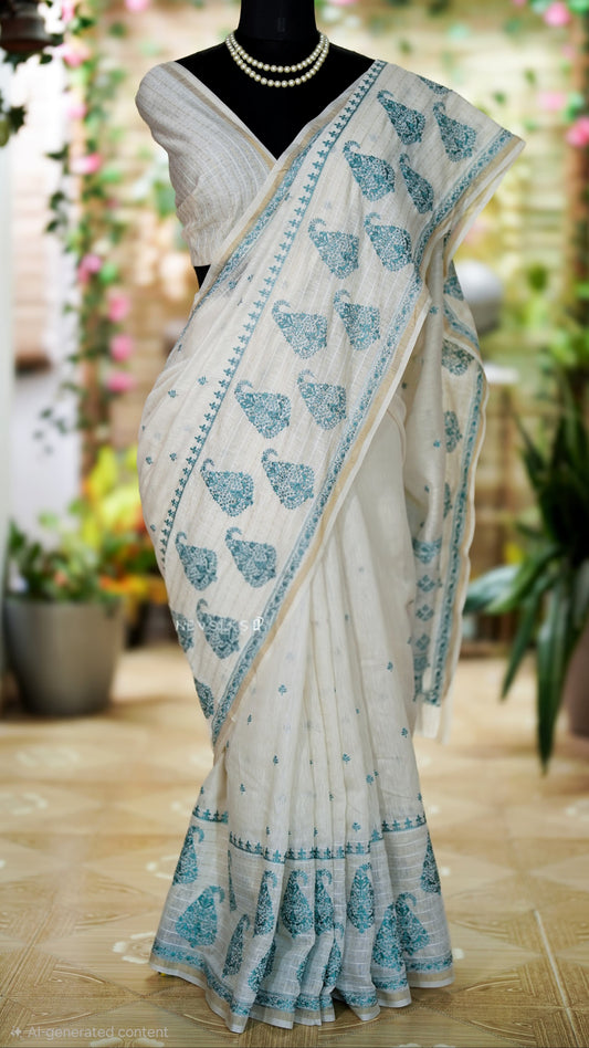 Chinnon silk saree with derry woven stripes- stitched blouse