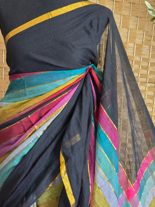 Black Mul cotton saree - No BP ( saree fall and pico done)