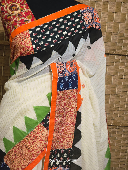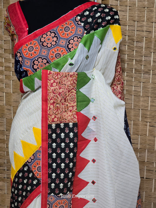 Cotton saree with multi color patch border-with Bp