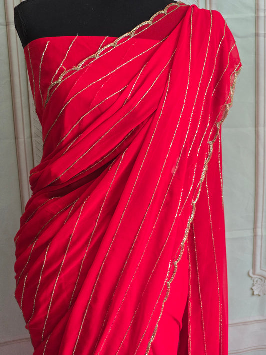 Cotton(mix) linen onam saree with stitched blouse (pink)