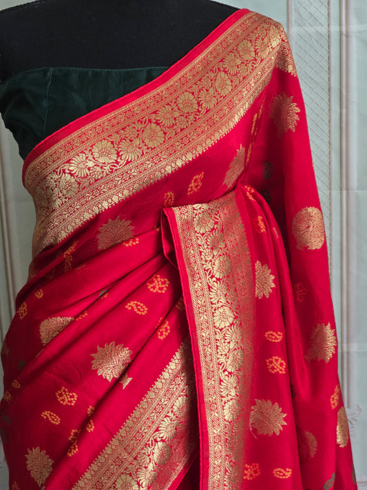 Banarasi saree with kadwa work border-stitched blouse