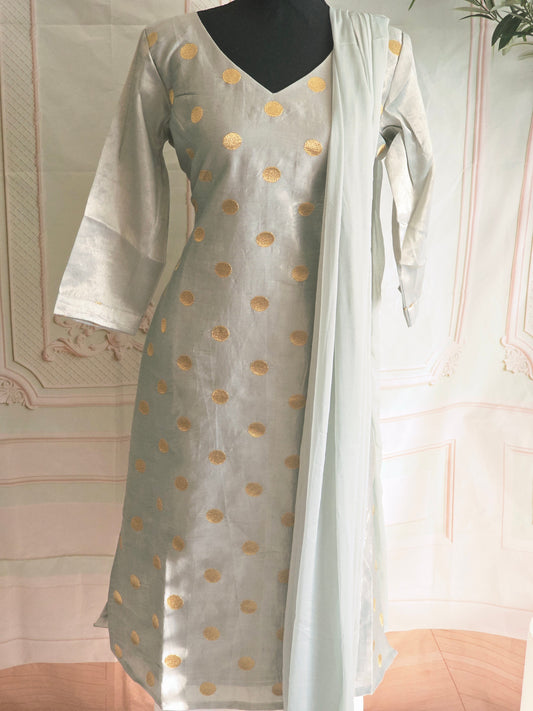 Bluish grey semi silk 3 pc salwar suit set
