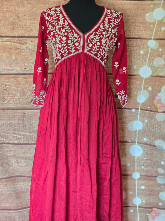 Cotton (mix) linen onam saree with stitched blouse (burnt orange)