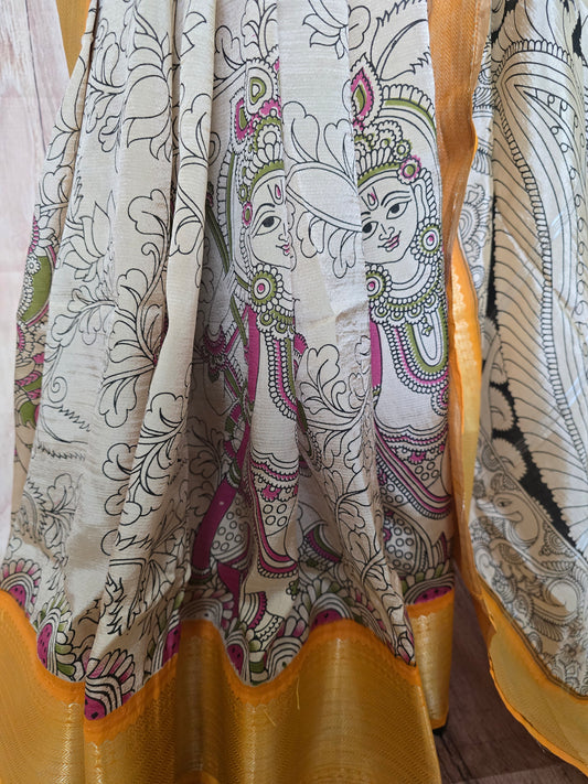 Chennuri silk sarees with kalamkari design all over body- stitched blouse