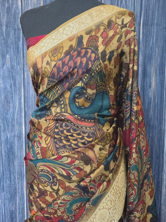 Crape silk saree with all over kalamkari design