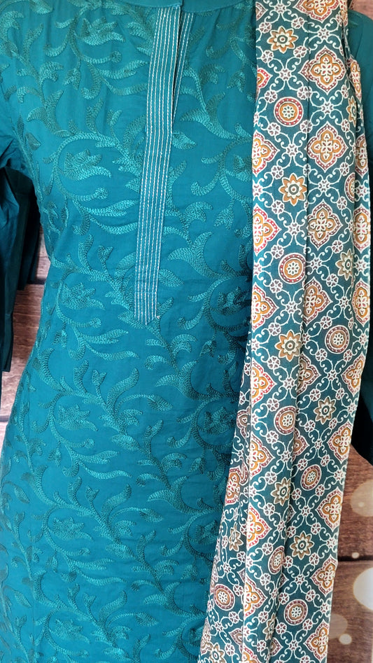 Cotton salwar set with ajrakh printed dupatta