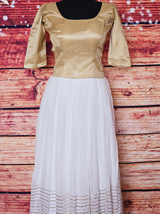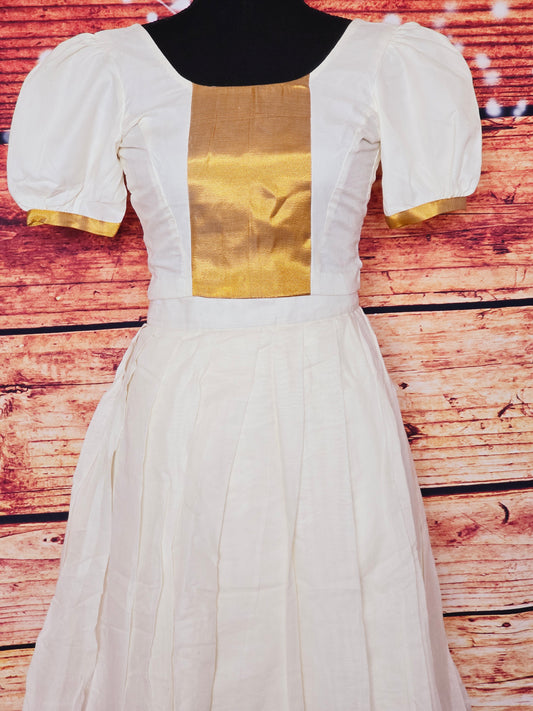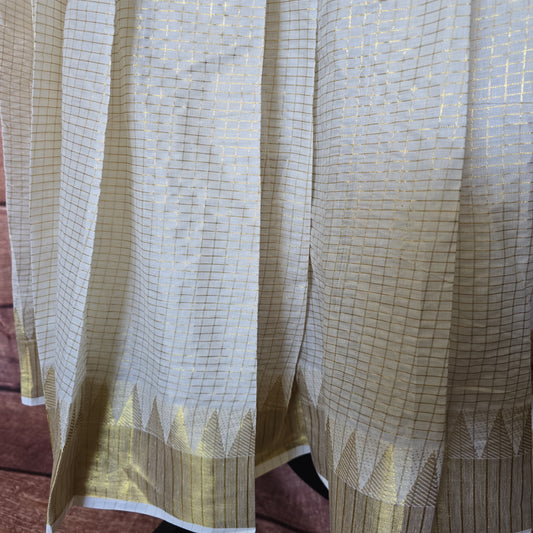 Creme color tissue skirt with kasav border(11-12 yrs old)
