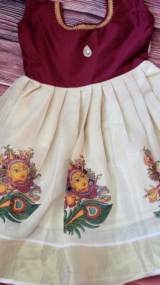 Creme color cotton skirt with kasav border( 11-12 yrs old)(top extra)