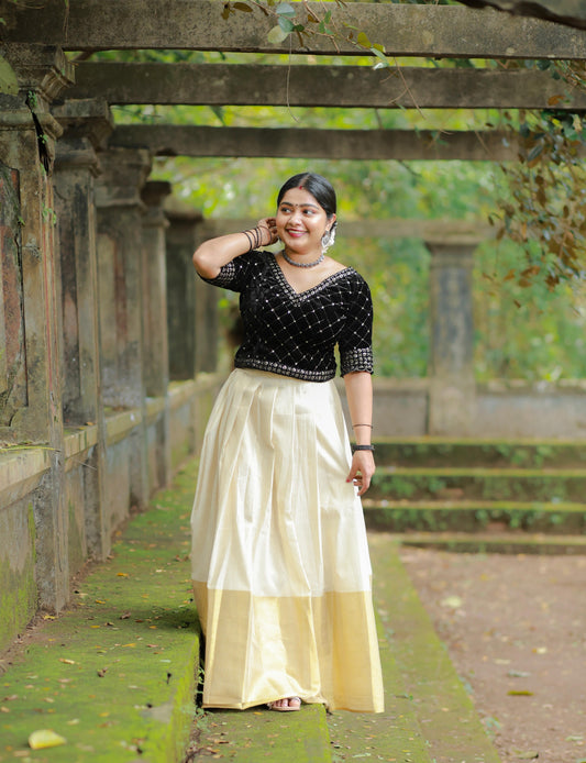 Onam skirt floral design- with tissue blouse - Adults 34-40 size