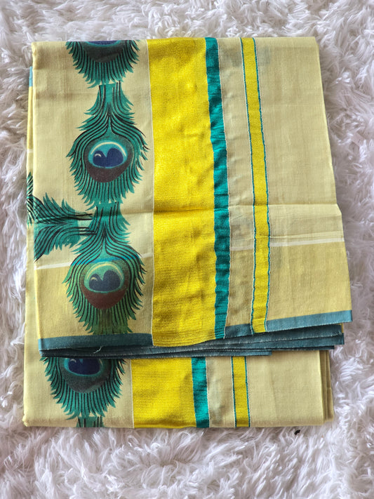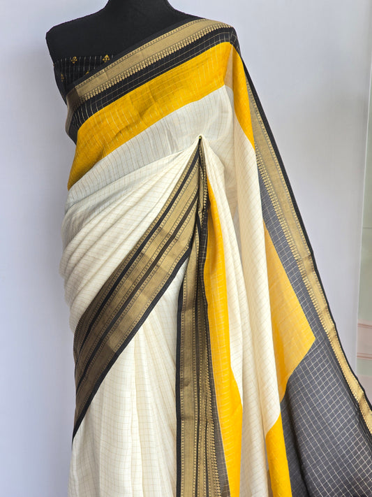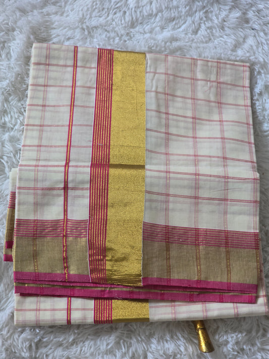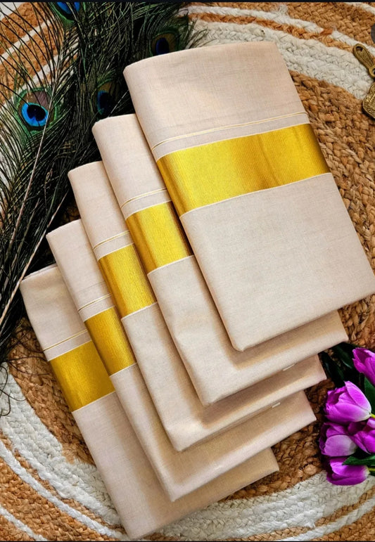 Premium quality cotton set saree with multi color kasav- Stitched blouse available