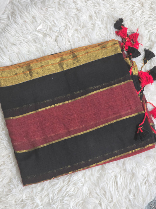 Mul cotton saree(duel tone)with fall and pico- No BP