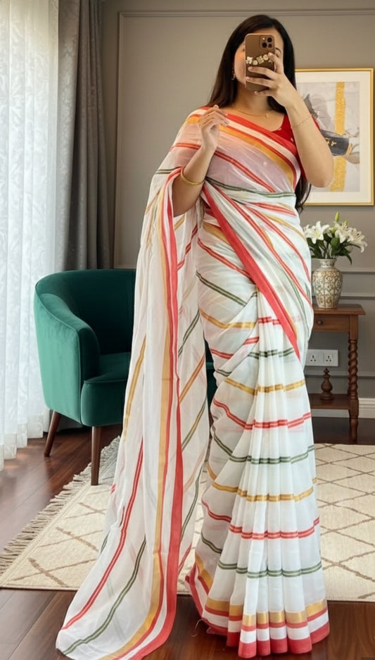 Mul cotton saree with multi color (fall and pico) No BP