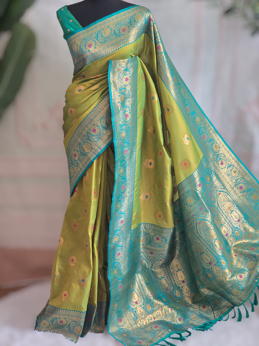kanchi silk saree with meenakari design - contrast BP