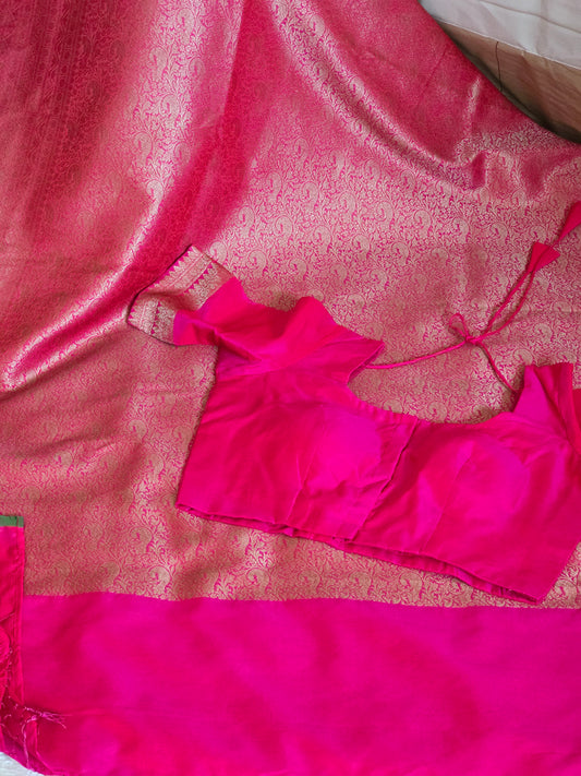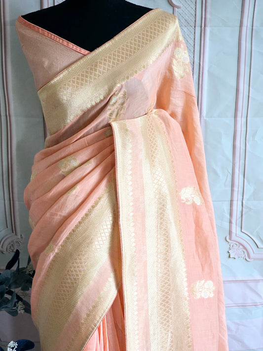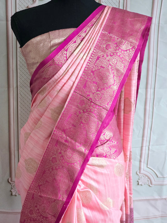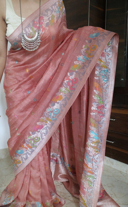 Pure Tussar silk saree with meenakari weaving- stitched blouse