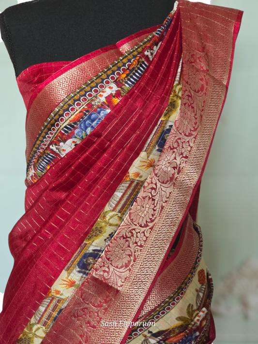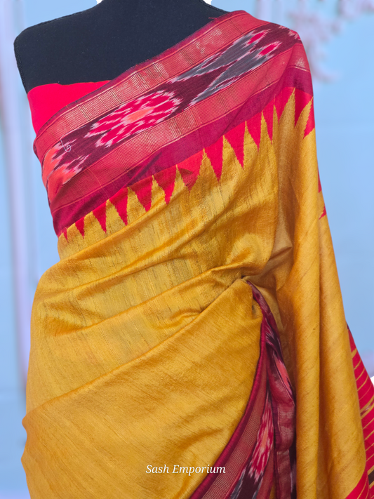 Jute/tussar silk saree with Temple border
