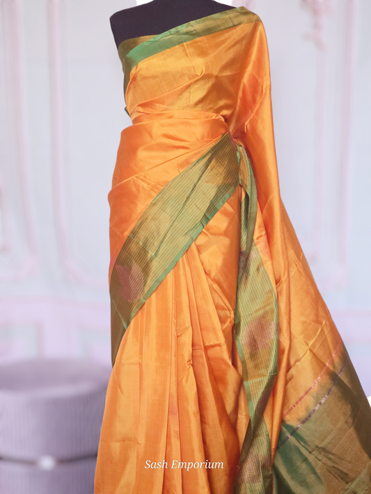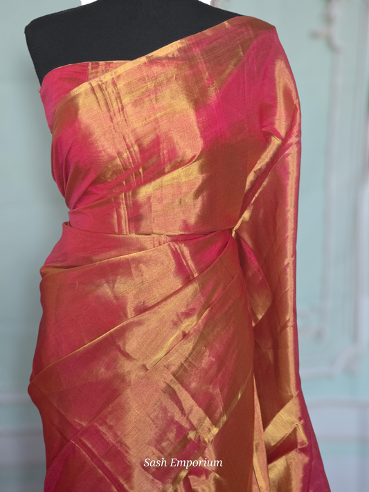 Pure tissue handloom saree (peach/ orange dule tone) with stitched blouse