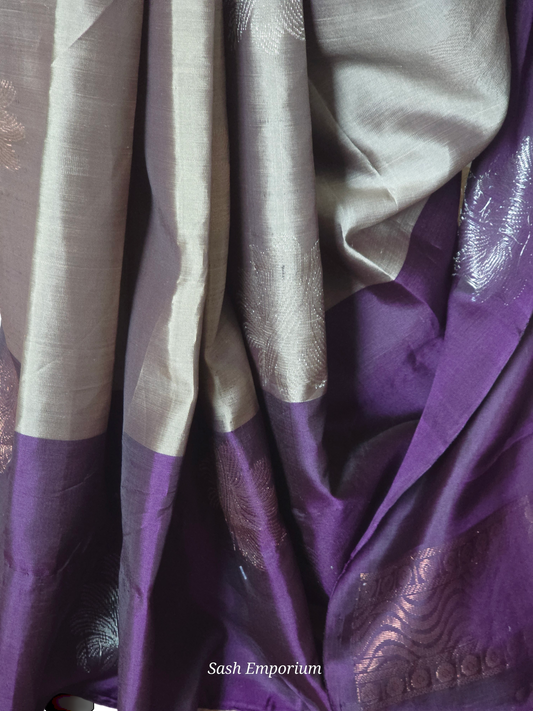 Kanchipuram soft silk saree (grey/purple) with stitched blouse