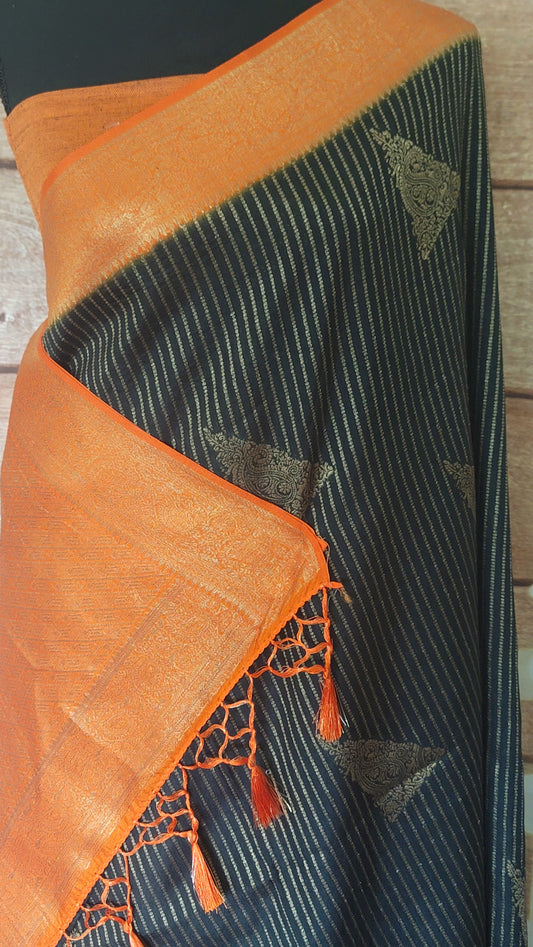 Pure jute silk saree with stitched blouse (sleevless black stripes)