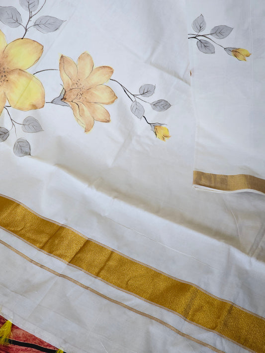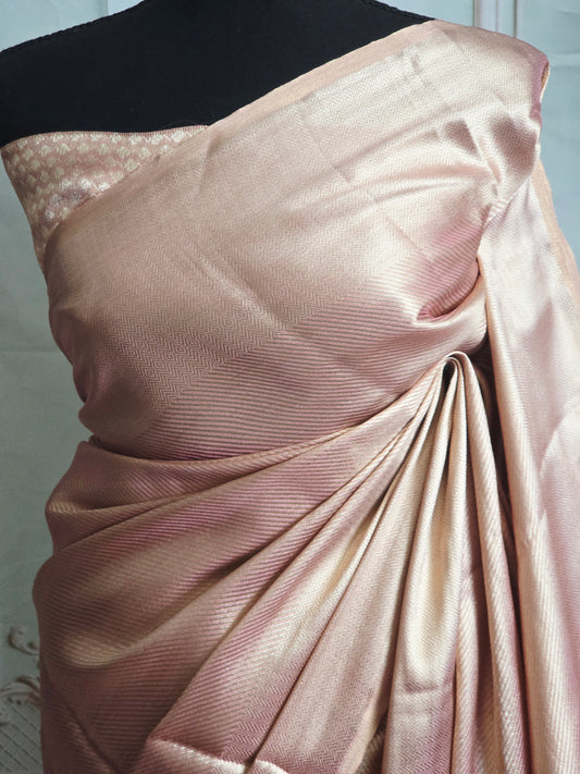 Beige golden shade-Kora Organza saree with golden weaves- Stitched blouse