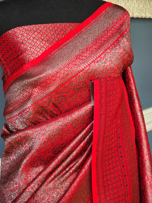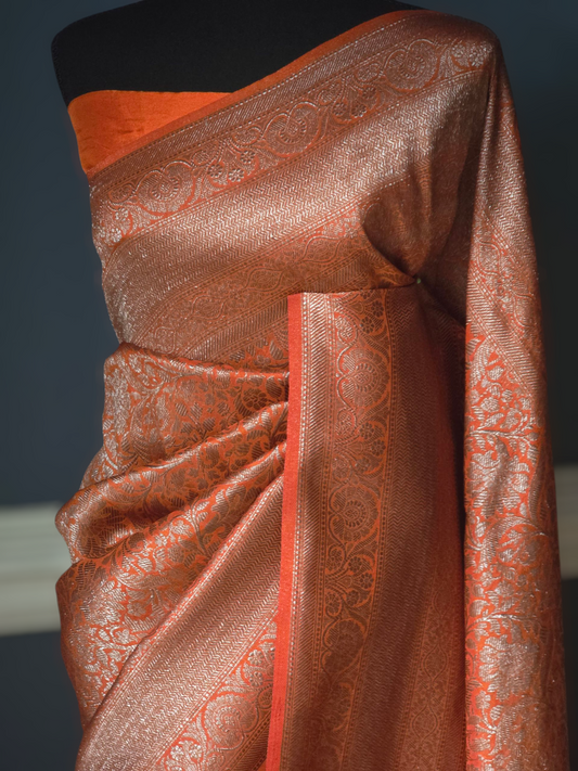 Semi katan silk saree with stitched blouse ( burnt orange)