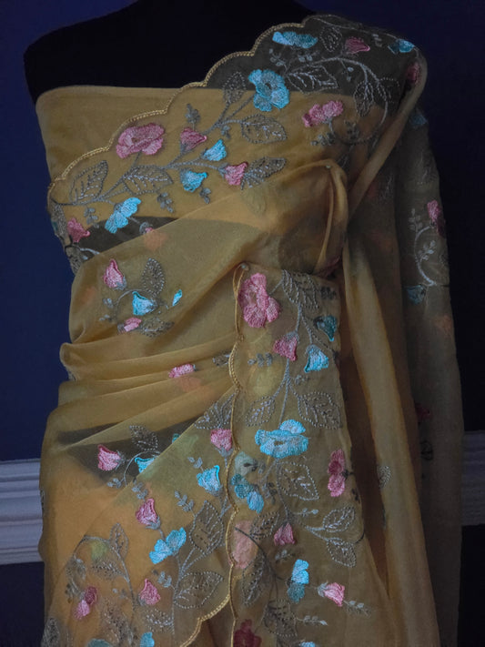 Pure organza silk saree with beads and stone work-stitched ( contrast) blouse