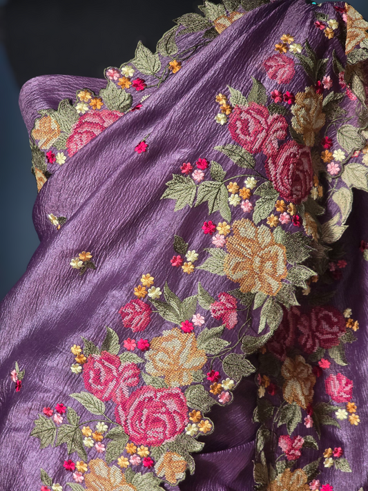 Pure muslin silk saree (Light lilac) with sequins- stitched blouse