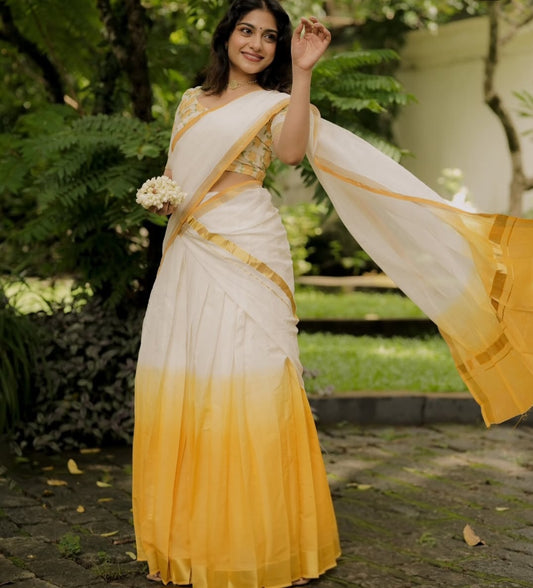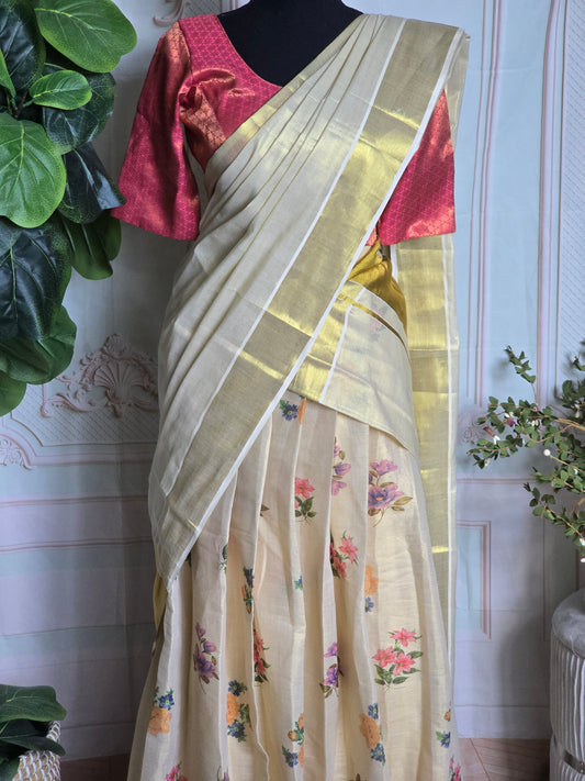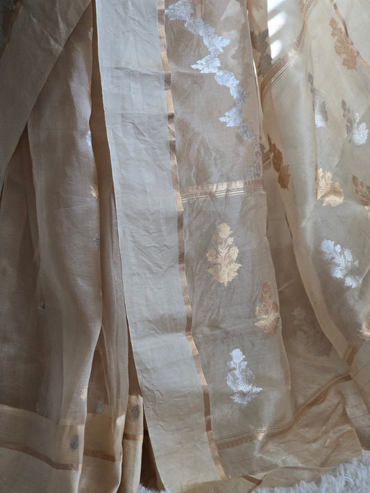 Beige golden shade-Kora Organza saree with golden weaves- Stitched blouse
