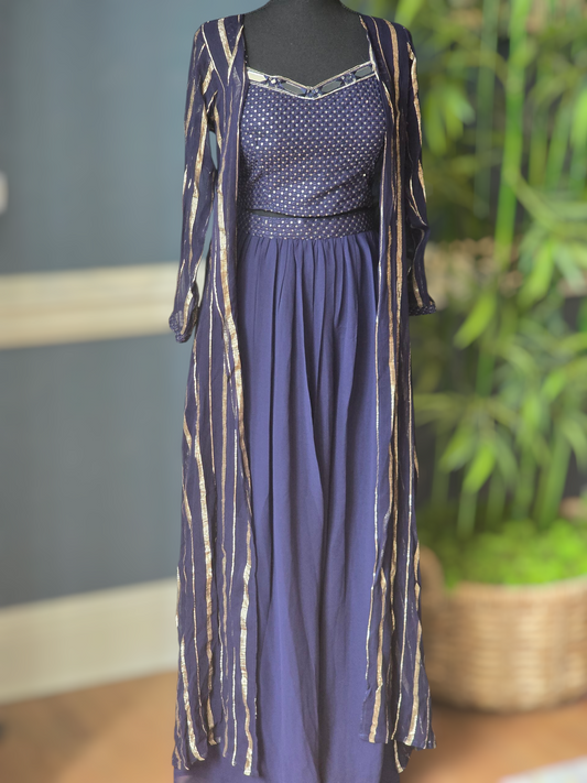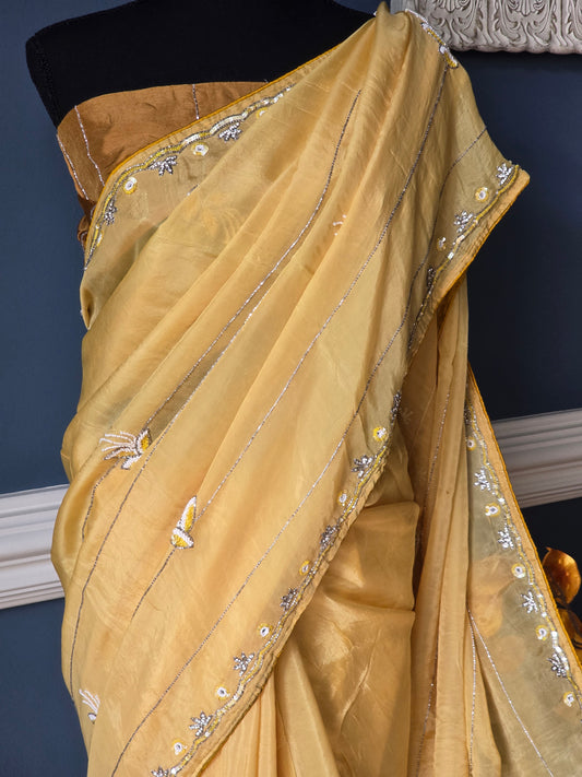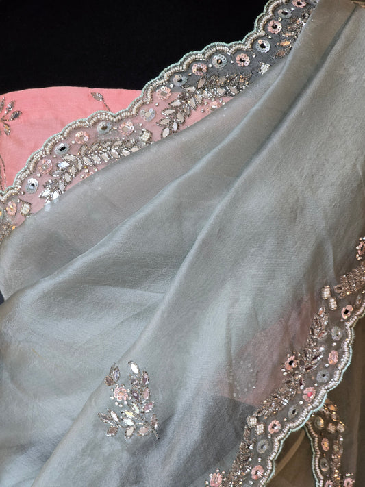 Pure organza silk saree with beads and stone work-stitched ( contrast) blouse