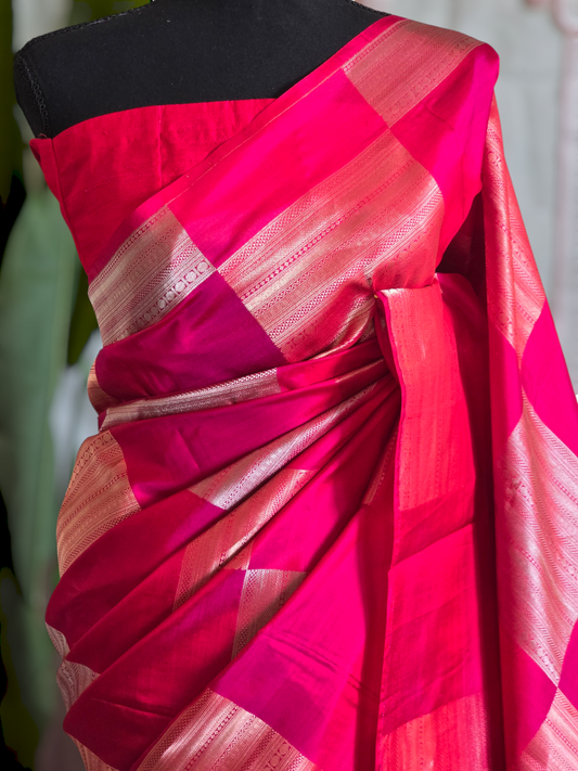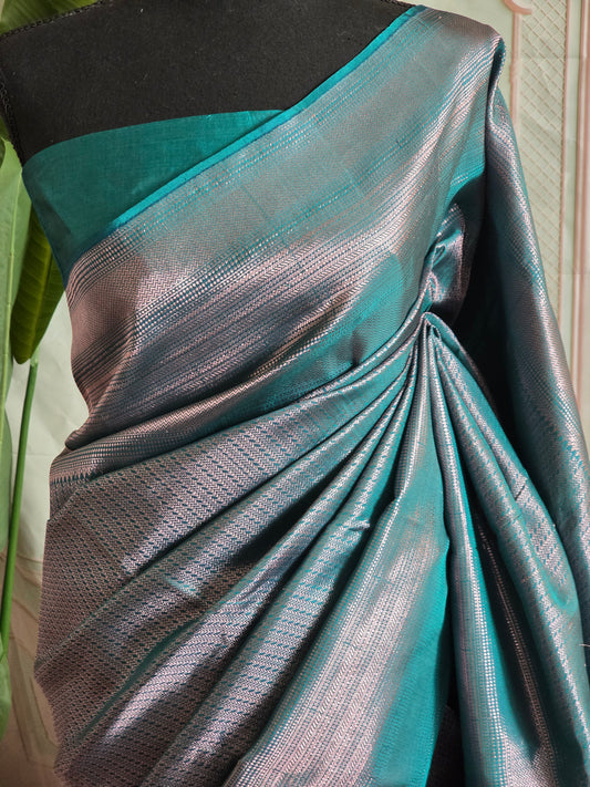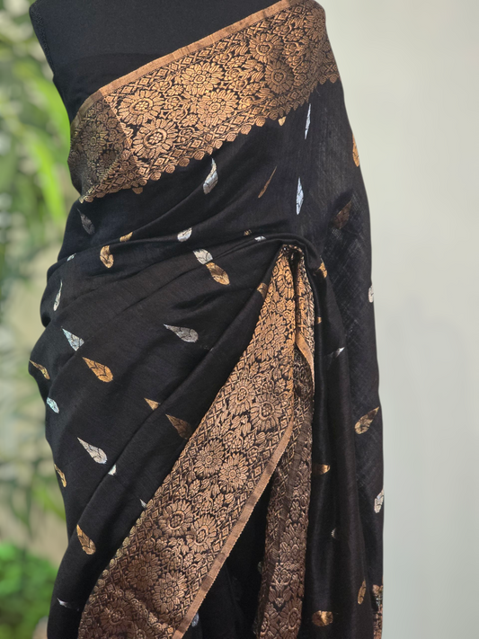 Matka silk banarasi saree with copper weaving- stitched blouse