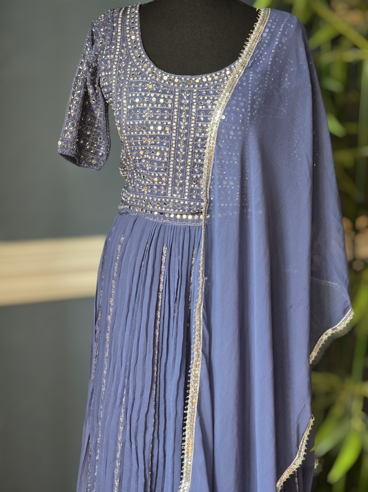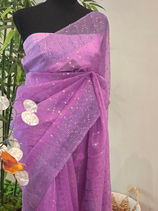 Pure muslin silk saree (Light lilac) with sequins- stitched blouse