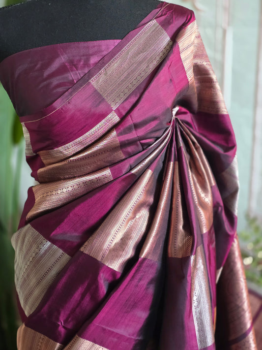 Pure kancheepuram (box design)borderless saree-bp maroon/purple shade