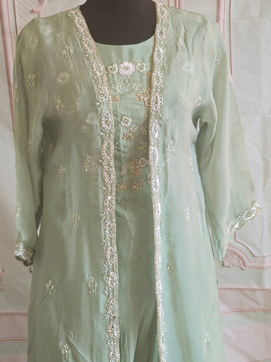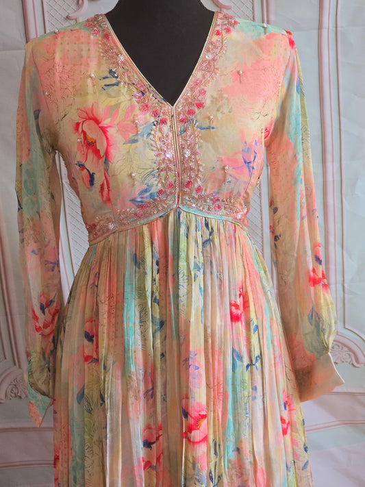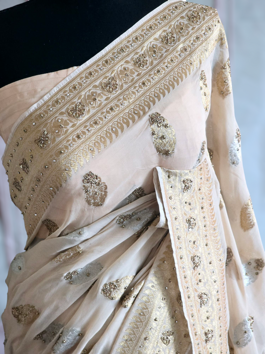 Pure georgette designer saree with zardozi/stone work- stitched blouse