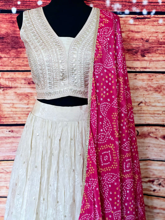 Off white lehenga set with contrast dupatta