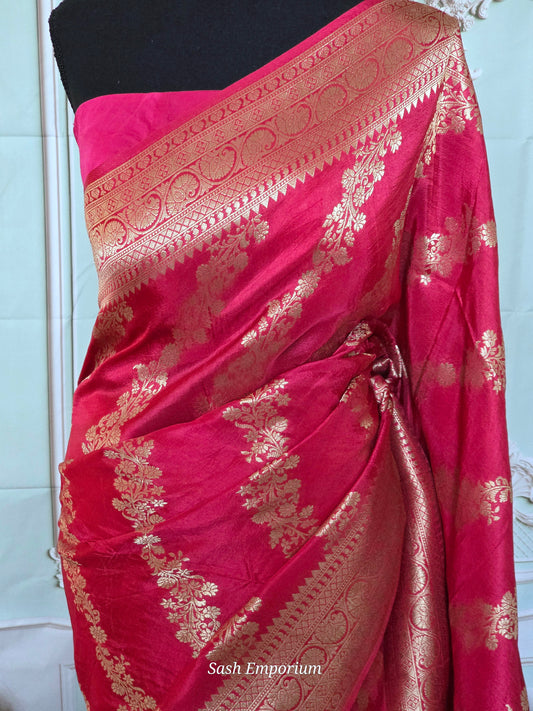 Mashru silk saree with antique gold banarasi border and design- stitched sleeveless blouse