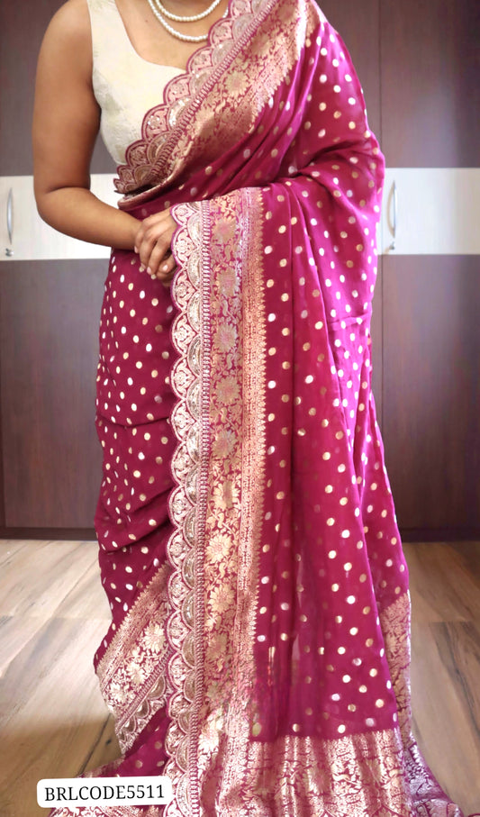 Pure georgette saree with heavy border- Stiched blouse available