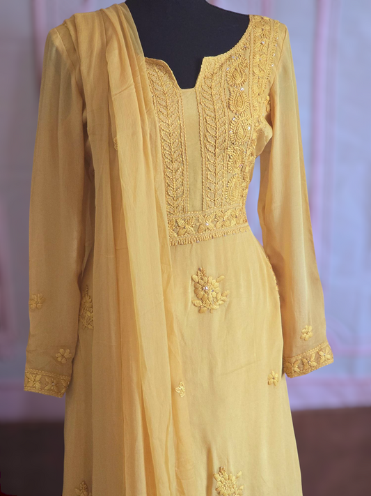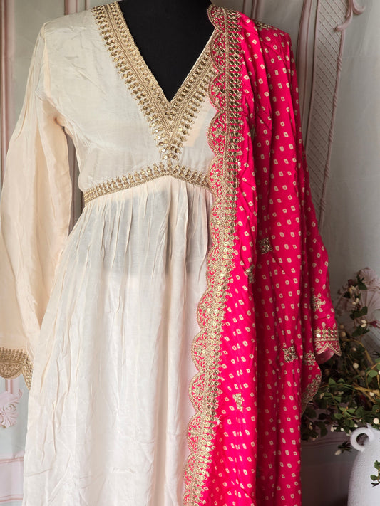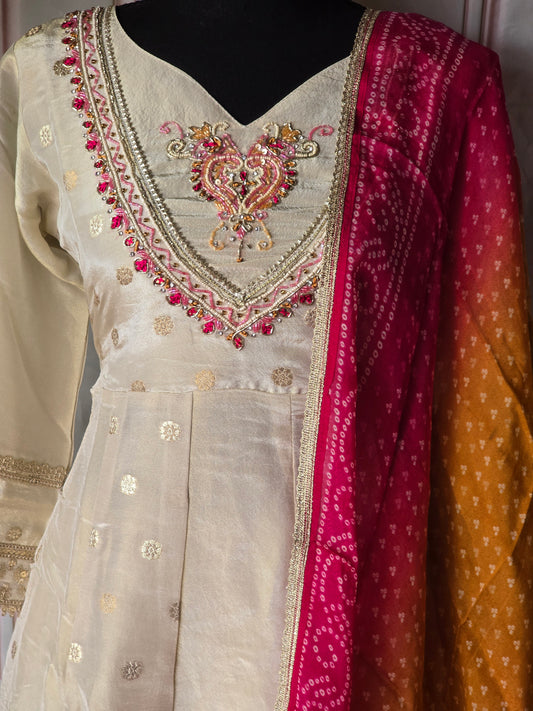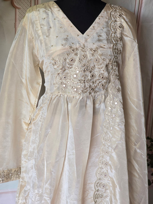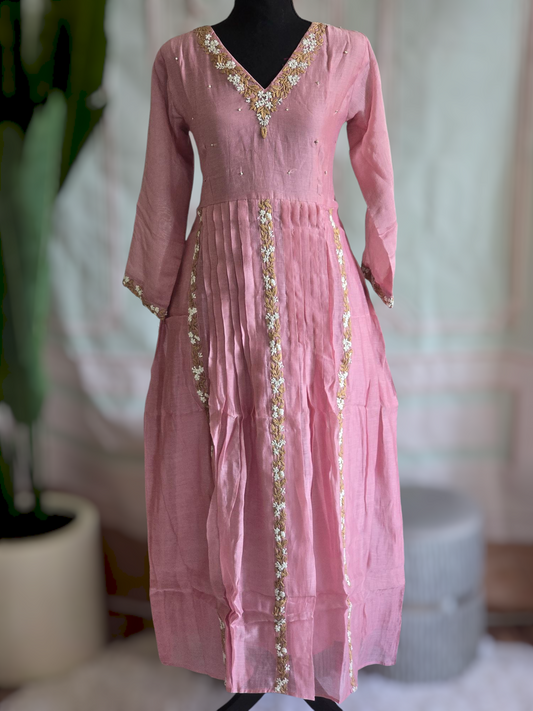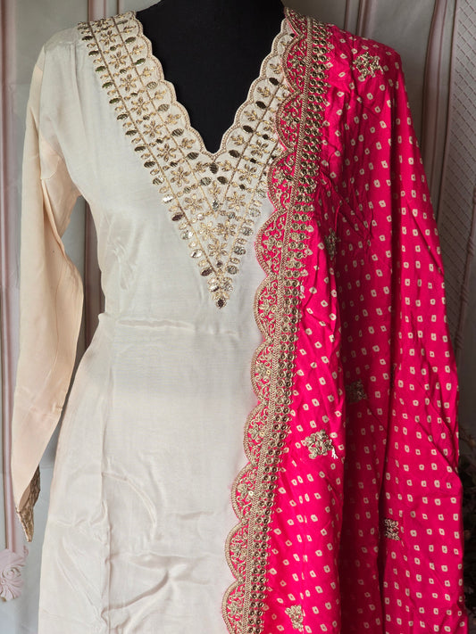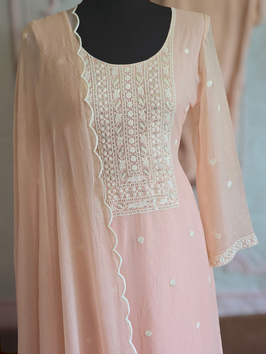 Malai chanderi 3 pc salwar suit set(Baby pink
