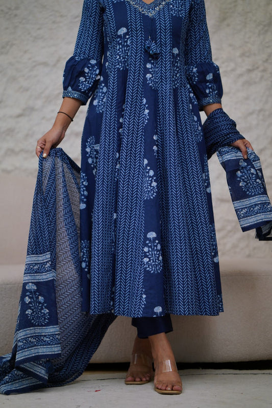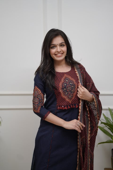 Cotton salwar suit set with kalamkari bottom and dupatta