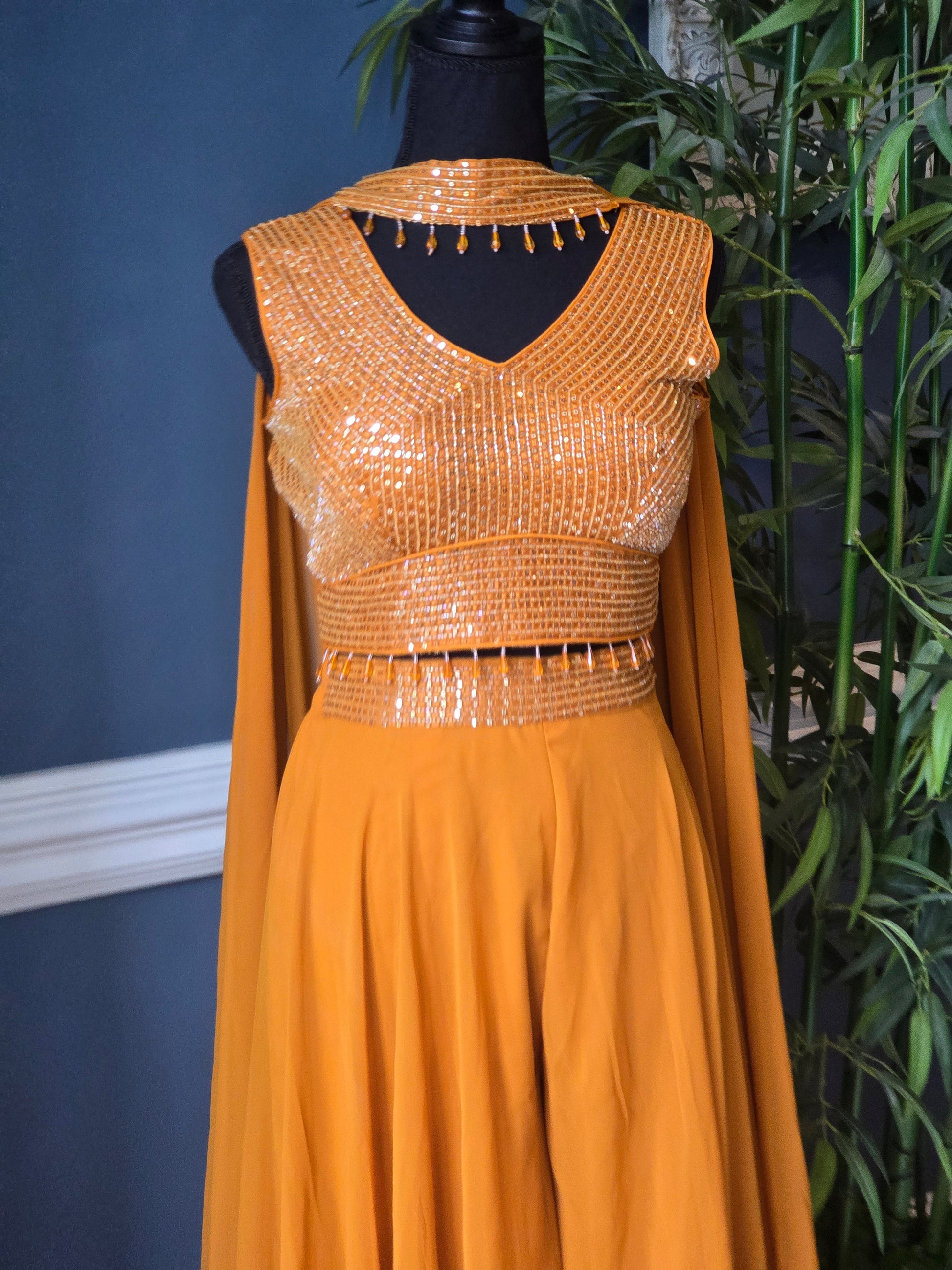 Flayered palazo 3 pc party wear set(turmeric yellow)