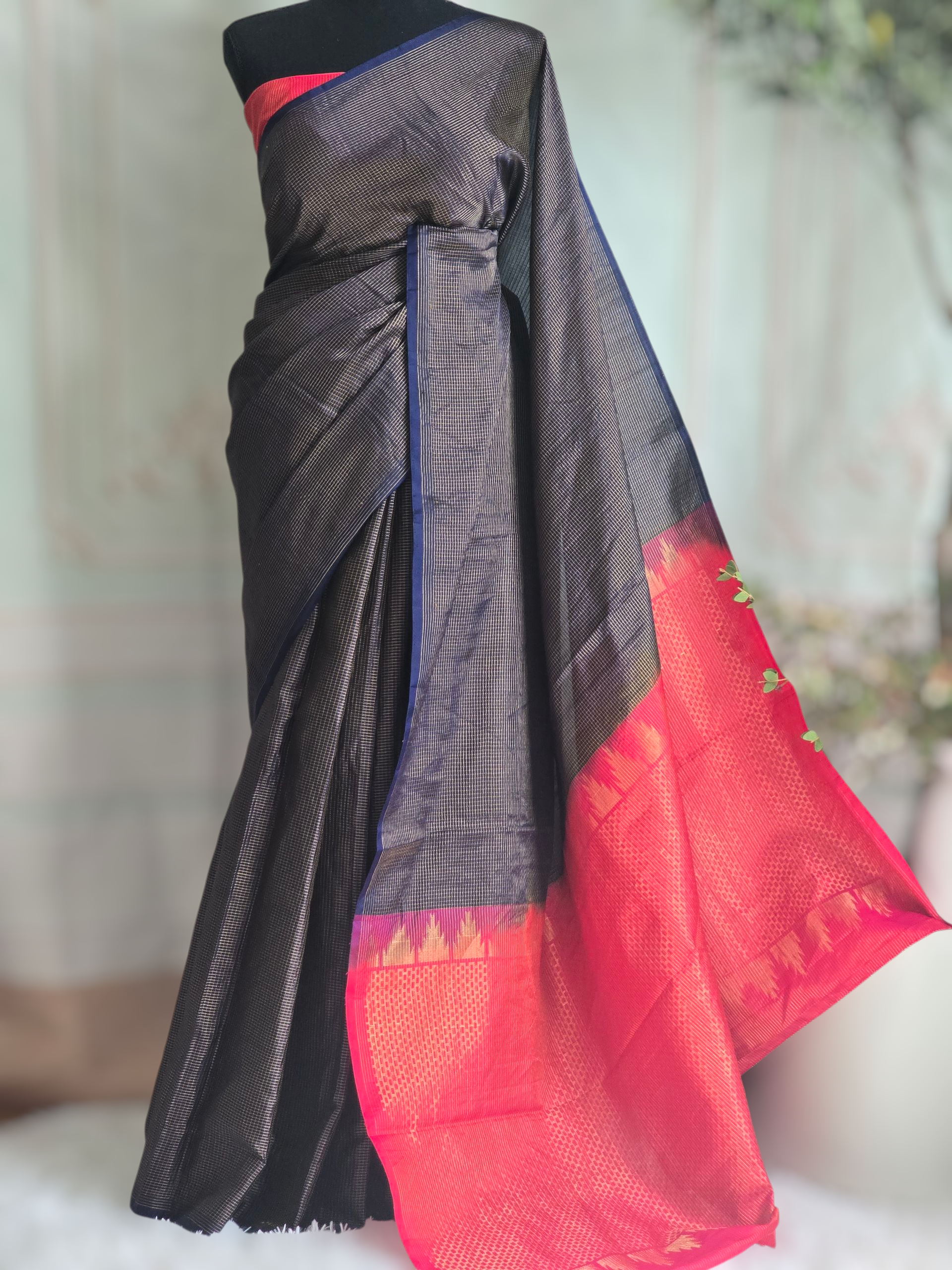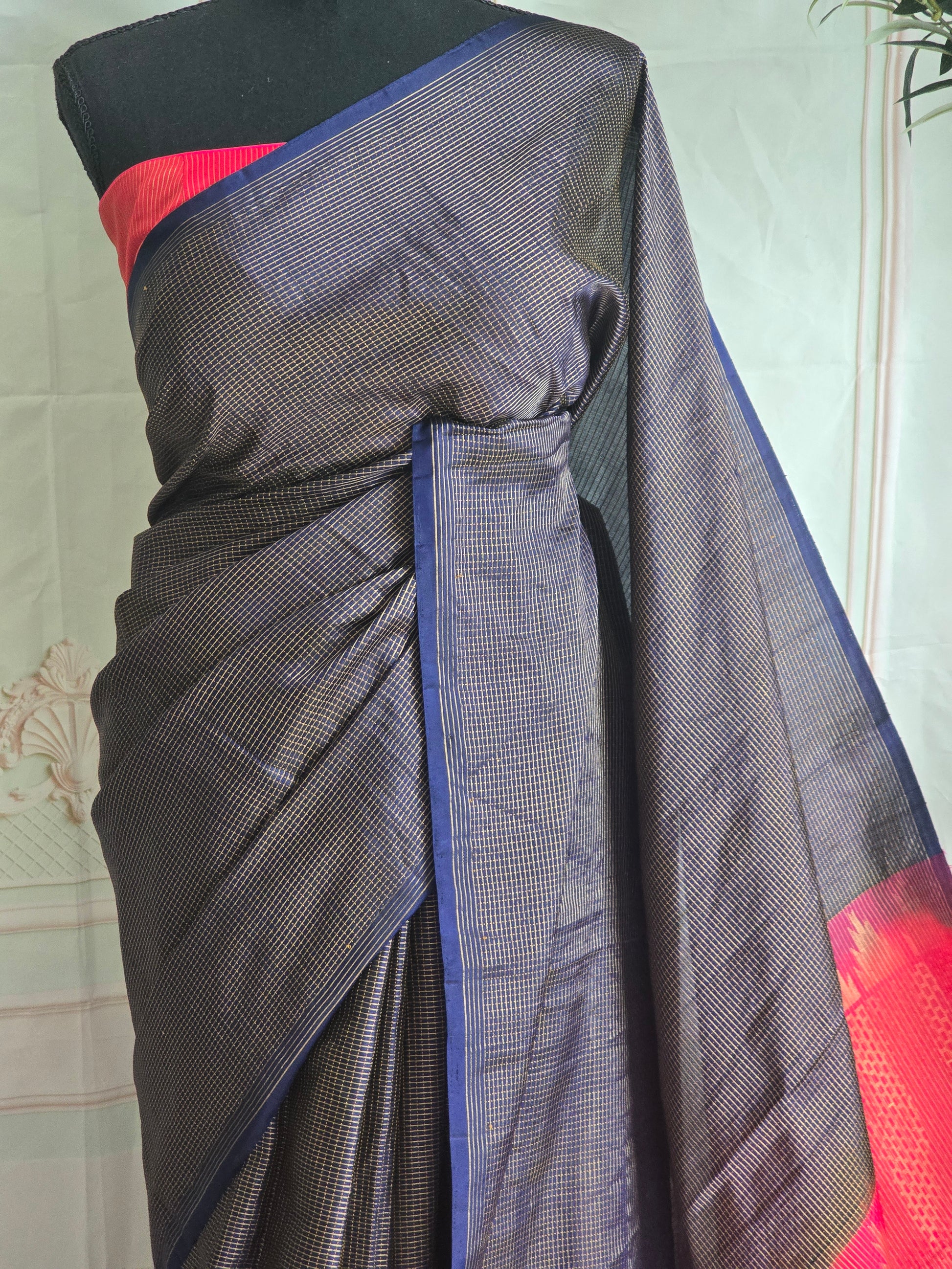 Soft kancheepuram silk saree (small checks body) with stitched blouse