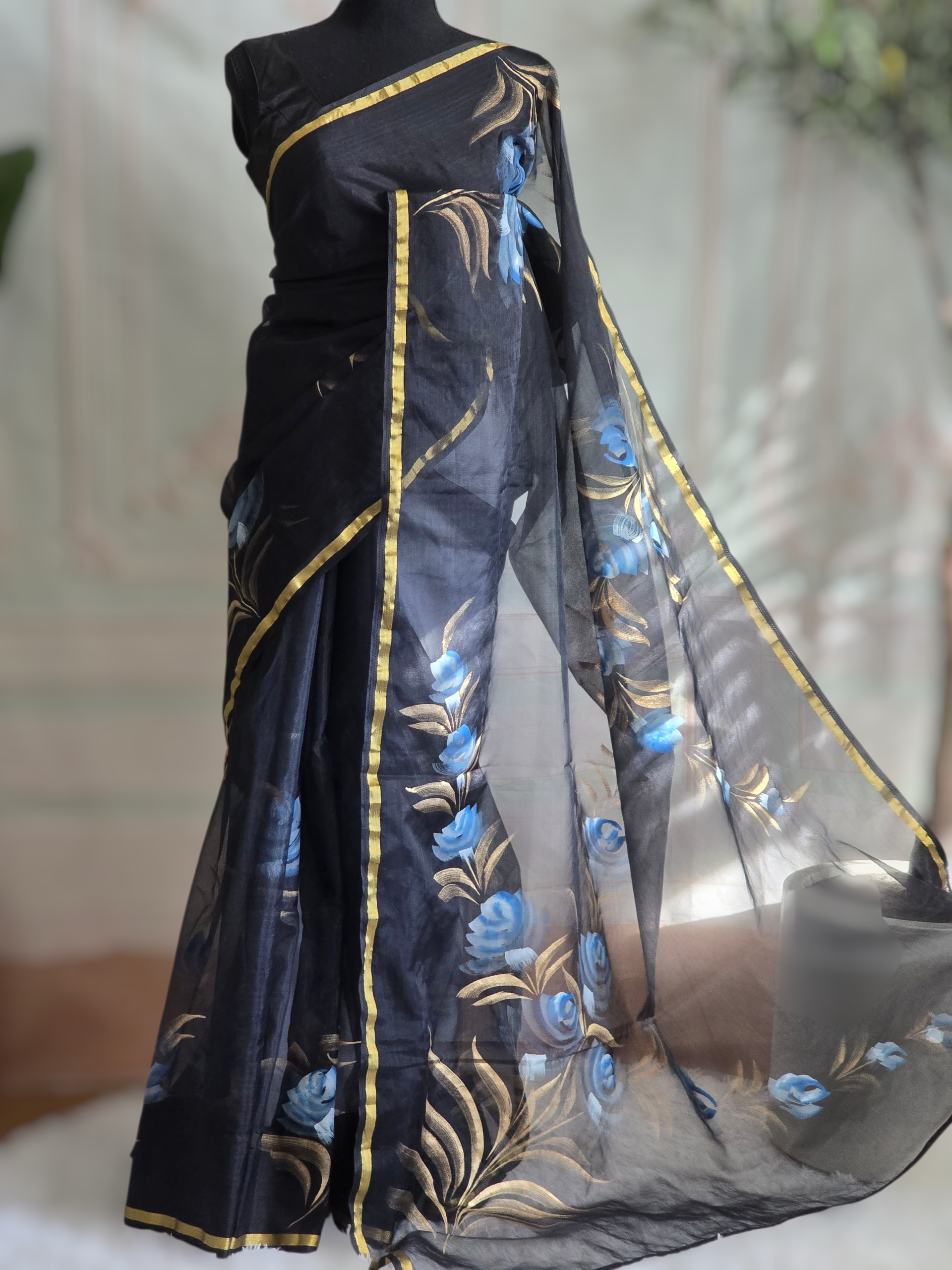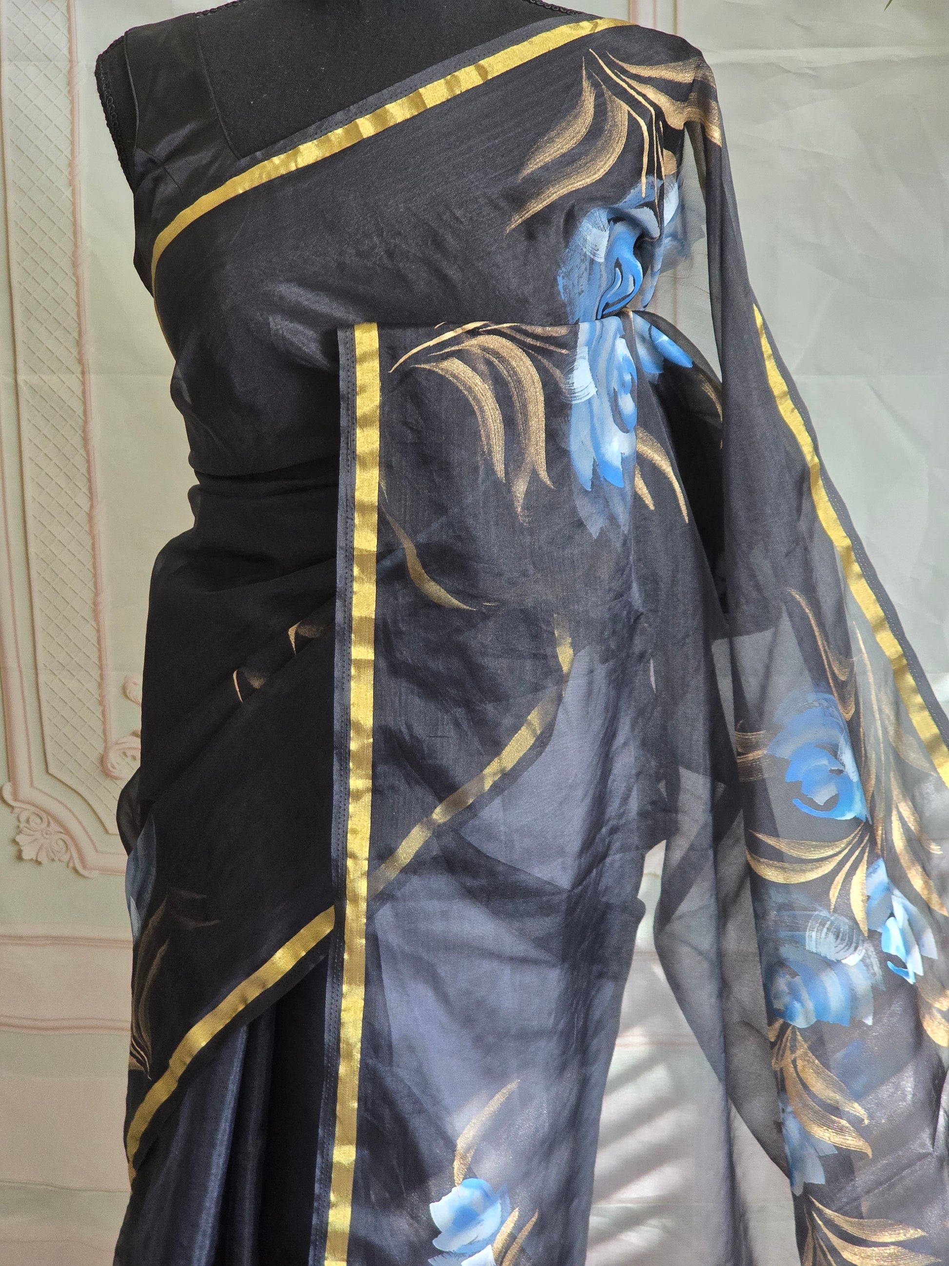 Soft organza with floral pinting design (lightweight)- stitched blouse